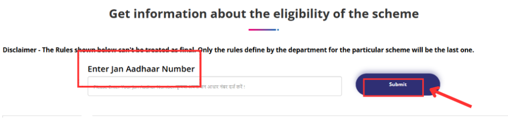 - इसके बाद आपको अपना Jan Aadhaar Number भरना है और सबमिट बटन पर क्लिक करना है।