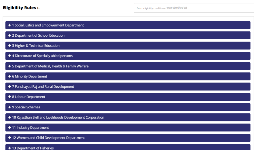 - क्लिक करते ही Rules For Eligibility Of Schemes Of Departments का एक फॉर्म ओपन होगा।
