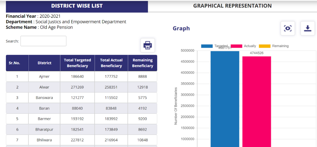 - लिस्ट से आपको पता चलता है कि किस जिले में योजना का कितना लाभ दिया गया है और कितने लोग अभी बाकी हैं।