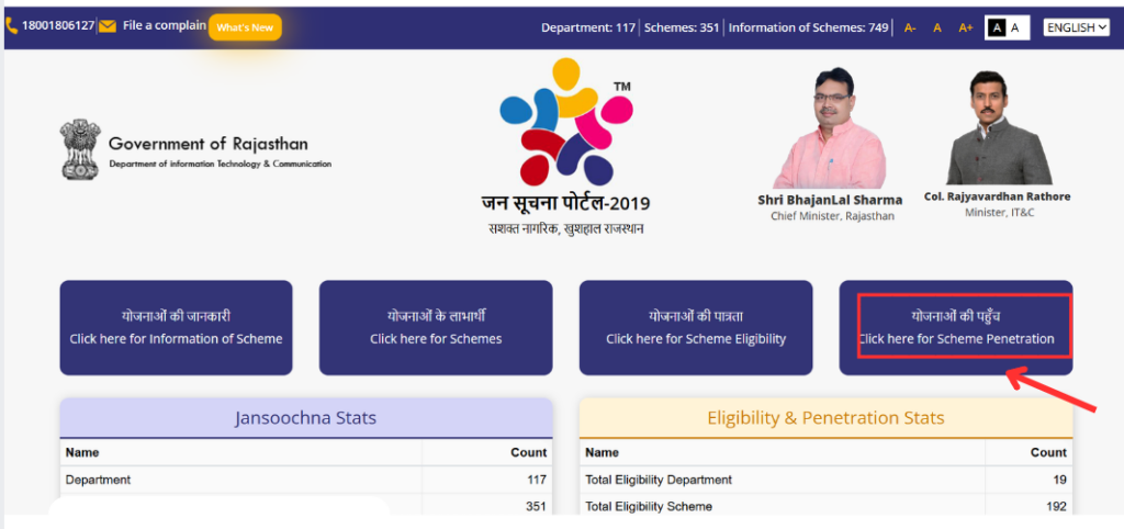 इस पोर्टल पर लगभग 117 विभाग, 351 योजनाएँ और लगभग 749 टाइप्स की सूचनाएँ अवेलेबल है। Jan Soochna Portal पर आप योजनाओ की जानकारी, लाभार्थी, पात्रता, और योजनाओ की पहुँच आदि की जानकारी जान सकते है।
