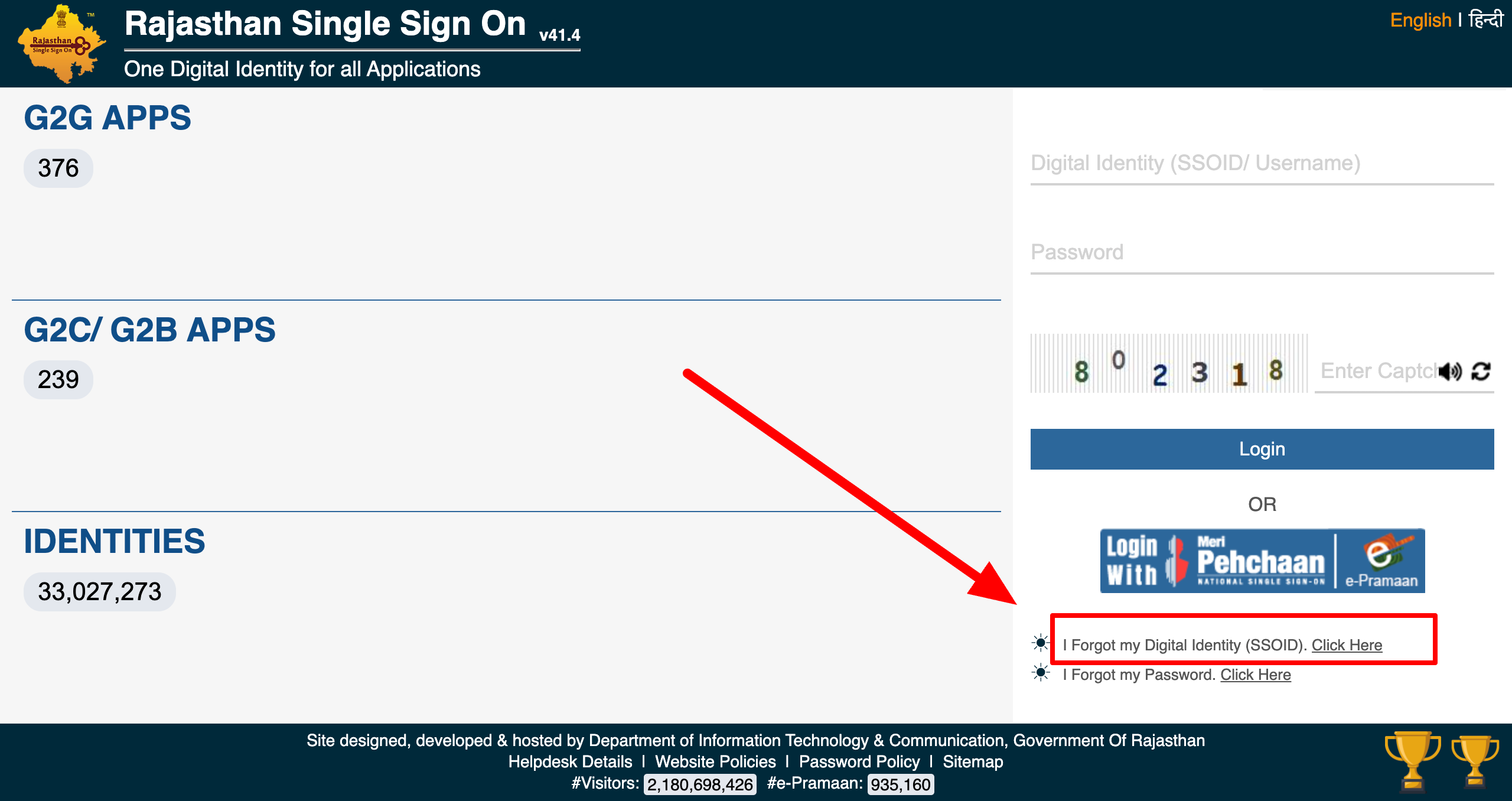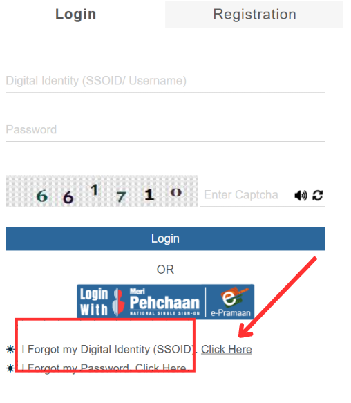 - अब लॉगिन फॉर्म ओपन होते ही आपको I forgot my digital identity ssoid लिंक पर क्लिक करना है।