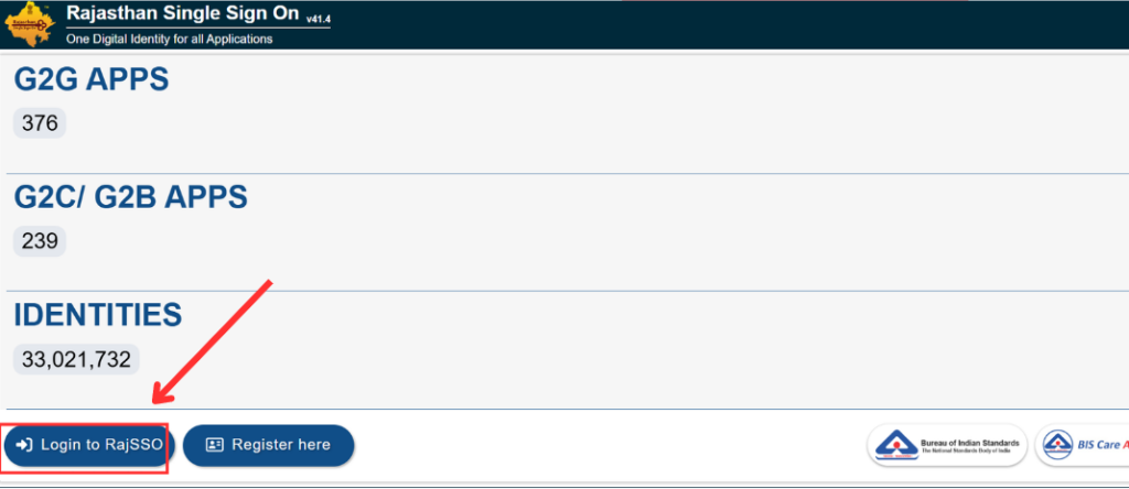 - इसके बाद होम पेज में आपको Login to Rajsso लिंक पर क्लिक करना है।