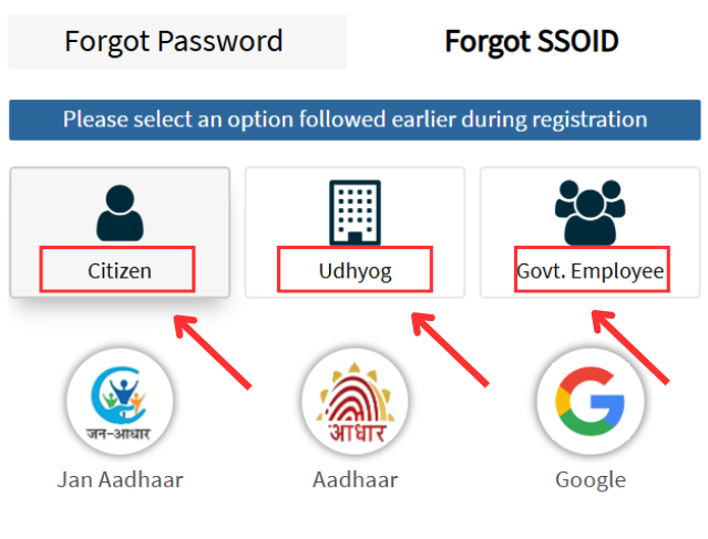 - इसमें आपको लगभग तीन ऑप्शन Citizen, Udyog और Govt. Employee मिलेंगे।